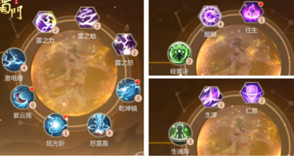 【主法宝月轮】优先加雷之力、雷之劫、雷之怒,这三个被动可以增加百花雷系的所有输出,其次点激电缠、怒雷轰两个控制技能,最后再点其他输出技能,输出技能推荐优先点没有CD的普通攻击技能。