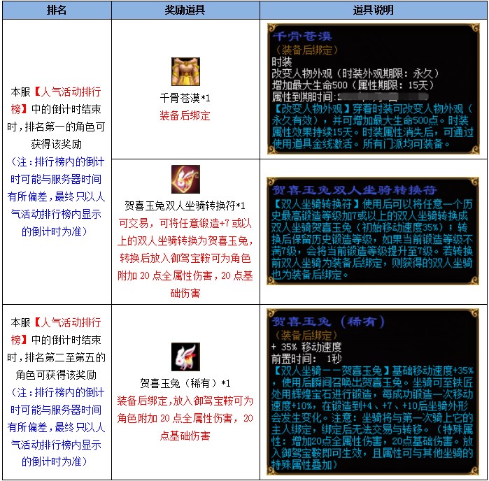 4、活动截止时间以服务器的【人气活动排行榜】中所显示的倒计时为准;