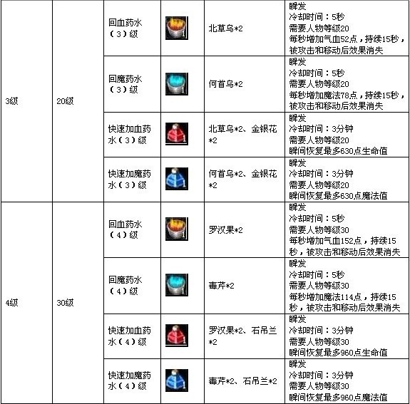 制药在低级的时候是比较痛苦的,做出的药成本高,效果没有商店好,多数时候只能自产自销。但是在三级之后,瞬红和瞬蓝的恢复量有了很多提升,商机就来咯。30级职业血量只有2000出头,二我们制作的瞬红一次就可以加接近一半的血量,是同等级百花加血量的3.5倍哦。