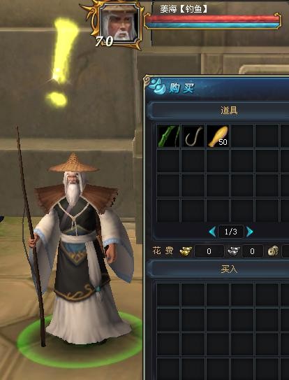 2、 在NPC【姜海】处玩家可以买到钓鱼所需的初级鱼竿和鱼饵,如下如所示: